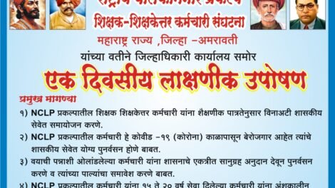 राष्ट्रीय बालकामगार शिक्षक – शिक्षकेत्तर कर्मचारी संघटनाचा लोकशाही मार्ग अमरावती प्रतिनिधी – गेल्या अनेक वर्षांपासून बालकामगारांचे होणारे...