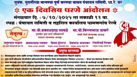 स्टोन क्रशरच्या जड वाहतुकी विरोधात संपूर्ण गावकरी एकवटले – पर्यायी रस्त्याची मागणी धामणगाव रेल्वे – गेल्या कित्येक वर्षांपासून वडगाव...