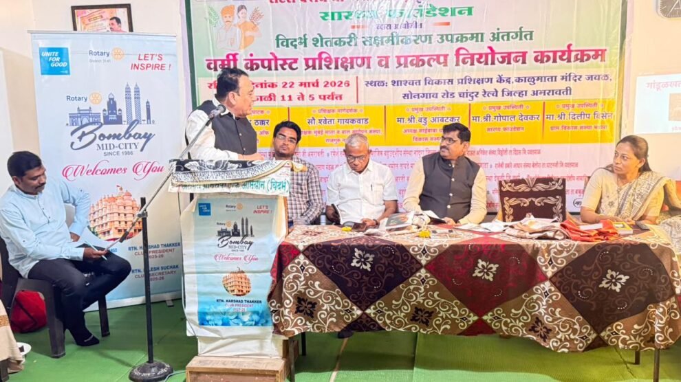 विदर्भ शेतकरी सक्षमिकरण कार्यक्रम चांदुर रेल्वे – प्रतिनिधी विदर्भ विभागातील शेतकरी यांनी उत्पादन खर्च कमी करण्यासाठी उपलब्ध संसाधनाचा वापर करुन वर्मी कंपोस्ट चे बेड तयार करुन सेंद्रिय पद्दतीने...