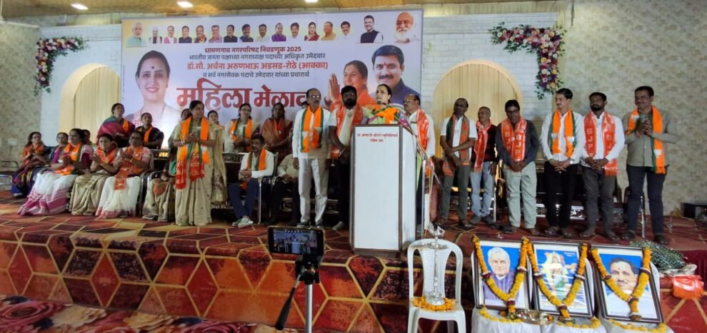 धामणगाव नगर परिषदेच्या नगराध्यक्ष पदाच्या भाजपाच्या उमेदवार अर्चना अडसड रोठे व नगरसेवक पदासाठी रिंगणात असलेल्या भाजपाच्या वीस उमेदवारांच्या प्रचारार्थ वाघ आज आल्या होत्या आरोही रिसॉर्ट येथे आयोजित भाजपा महिला मेळाव्याला संबोधित करताना त्या म्हणाल्या की देशाचे पंतप्रधान नरेंद्र मोदी यांनी महिलांसाठी बालपणापासून तर संपूर्ण आयुष्यासाठी विविध योजना आणल्या त्या योजनेचा लाभ सर्वसामान्य महिलांना मिळत असताना काही दोडके भाऊ महिलांच्या विरोधात बोलतात या दोडक्या भावाला या निवडणुकीत धडा शिकवा असा अप्रत्यक्ष टोला त्यानी माजी आ विरेंद्र जगताप यांना मारला.