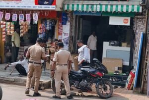 बेजबाबदारपणे रस्त्यावर वाहने उभी करणाऱ्यावर कारवाई करताना पोलीस प्रशासन