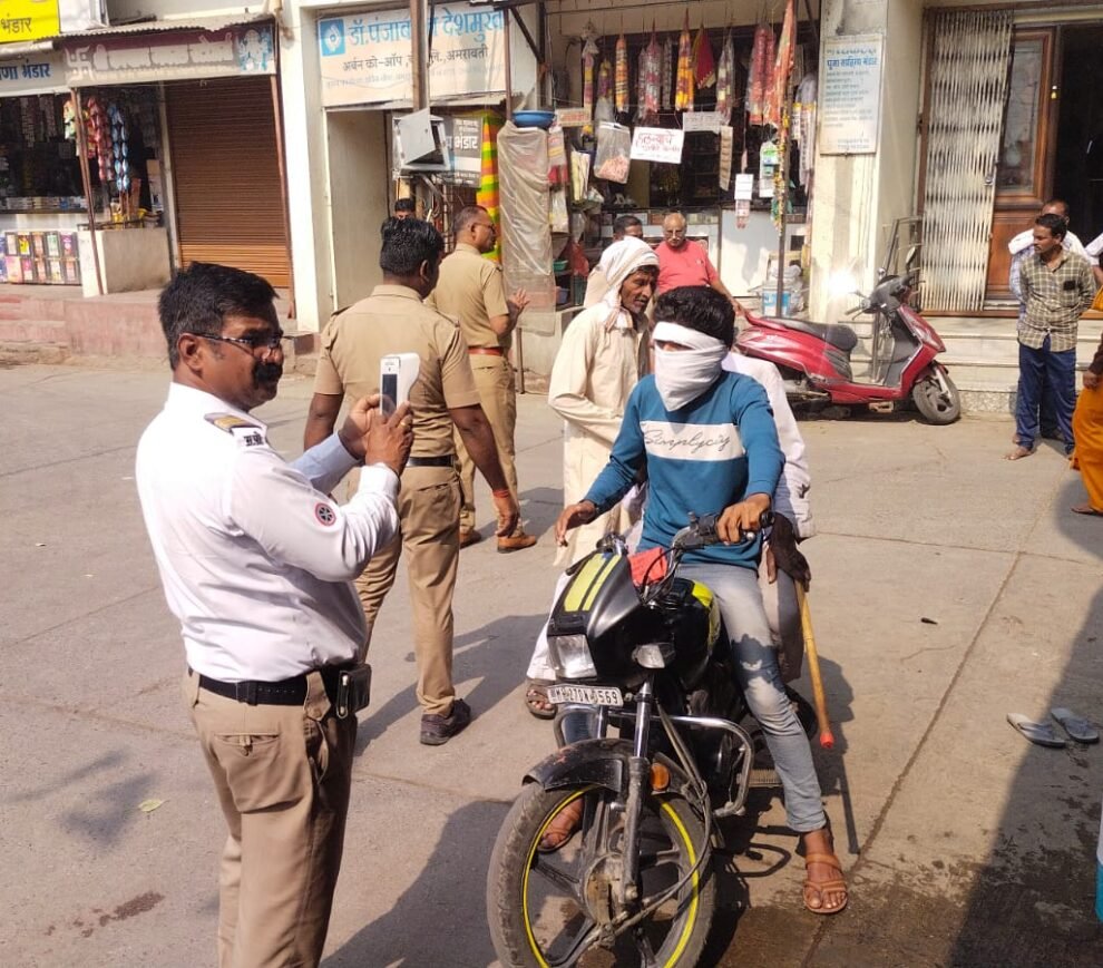 “मुख्य रस्त्यावरील वाढते अतिक्रमण जनतेसाठी डोकेदुखी” या हेडलाईन खाली जनसूर्या न्युज ने बातमी प्रकाशित केले होती. त्यावर पोलीस प्रशासन ऍक्शन मोडवर आली असून धामणगावात कालपासूनच सातत्याने कारवाईचा बडगा उगारण्यात आला आहे. ठाणेदार गिरीश ताथोड यांच्या नेतृत्वाखाली सहा. पो. निरीक्षक गजानन गजभाये आपल्या टीम सह स्वतः रस्त्यावर उतरून दुकानासमोरील वाढलेल्या अतिक्रमणामुळे बेजाबदारपणे रस्त्यावर वाहने लावणाऱ्या तसेच वाहतूक नियमाचे पालन न करणाऱ्यावर दंडात्मक कारवाई करीत आहे. त्यामुळे रस्ता आपल्या बा… चा समजून कुठेही वाहने उभी करणाऱ्यांना चांगलीच चपराक बसत आहे. आपल्या दुकानासमोर बेशिस्तपणे वाहने उभे करीत असल्याने दुकान मालकांनासुद्धा पोलीस प्रशासनाकडून चांगला समज यावेळी देण्यात येत आहे.